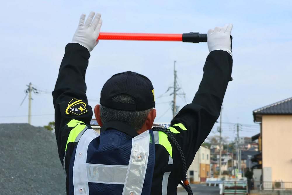 建築・土木工事現場において、工事車両の誘導、資材の搬入・搬出時の安全確保、一般通行者の誘導等を行い、工事が安全に進行するようサポート致します。